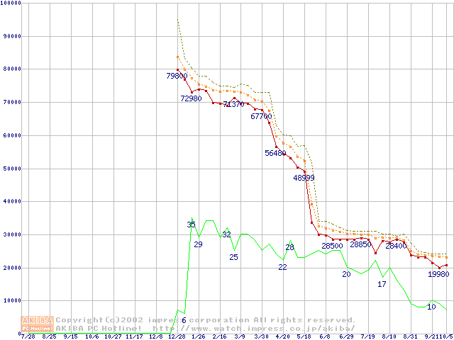 Pentium 4 2.20GHz リテールパッケージの価格推移
