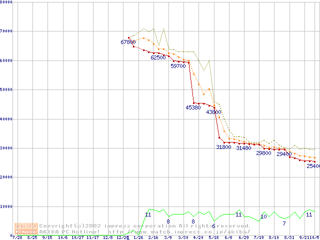 Socket 603 (micro-PGA,L2 512KB,Hyper-Threading,Prestonia)の最安値推移