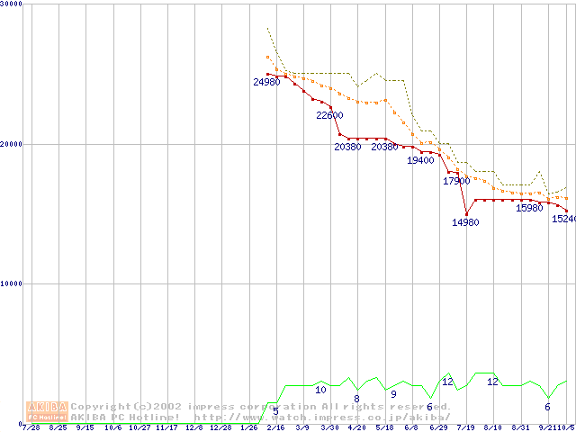 MHRシリーズ (9.5mm,4200rpm,UltraATA/100,2MB,流体軸受,20GB/Platter)の最安値推移