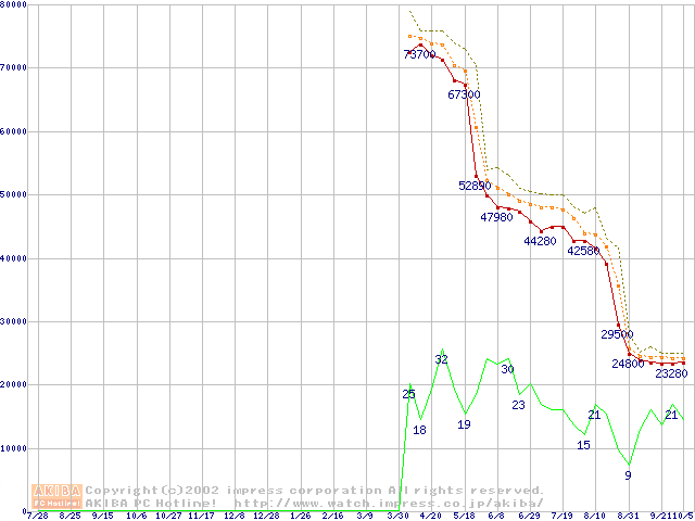 Socket 478 (micro-PGA,FSB 400MHz,L2 512KB,Northwood)の最安値推移