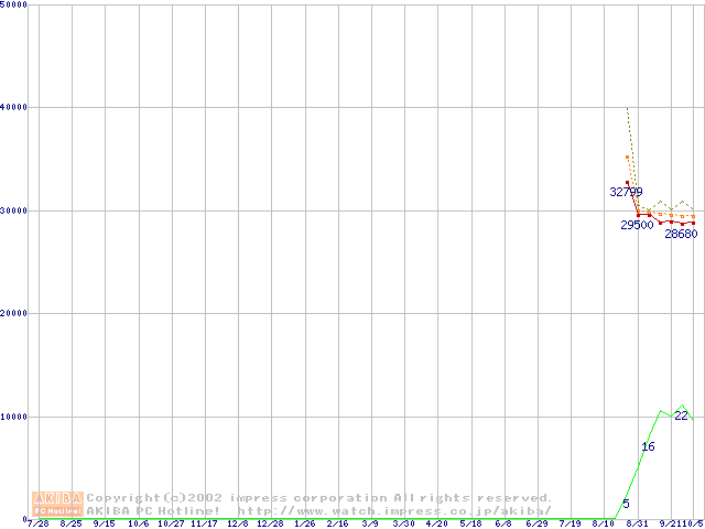 Socket 478 (micro-PGA,FSB 400MHz,L2 512KB,Northwood)の最安値推移