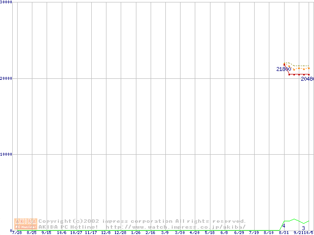 Socket A (OPGA,FSB 200MHz,L2 256KB)の最安値推移