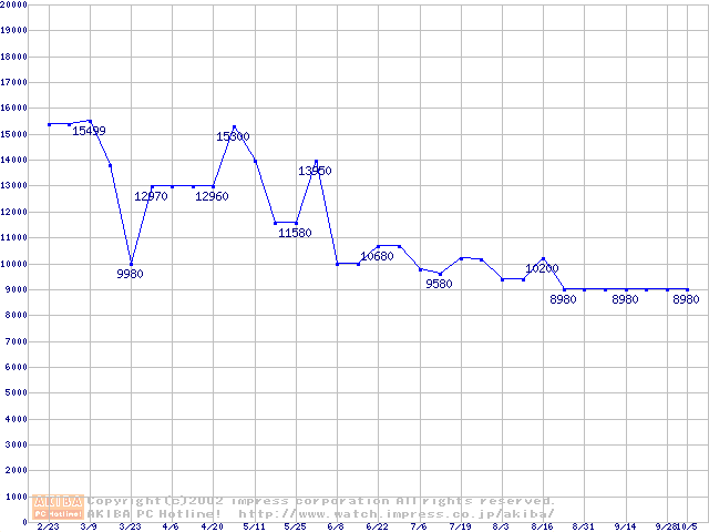 | [↓次グラフ]: | Socket A (Thunderbird,PGA,FSB 266MHz,L2 256KB)の最安値推移 |