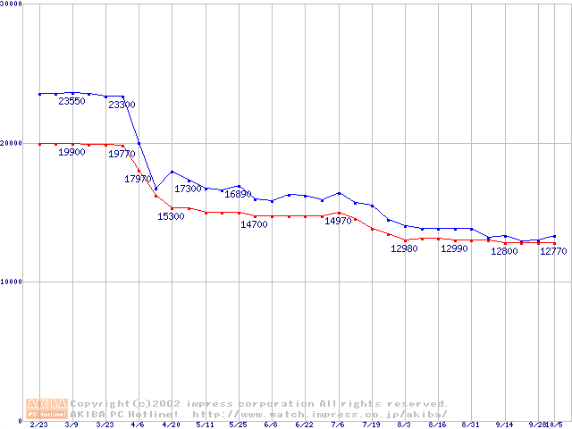 | [↑前グラフ]: | Socket 370 (FC-PGA2,FSB 133MHz,L2 512KB)の最安値推移 |