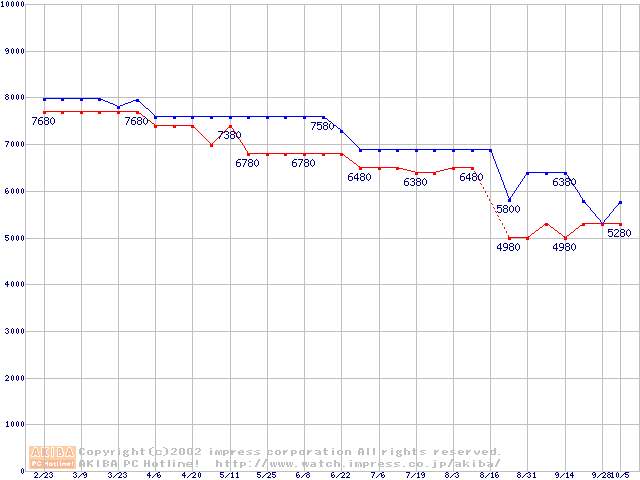 | [↓次グラフ]: | Deskstar 180GXP (7200rpm,UltraATA/100)の最安値推移 |
