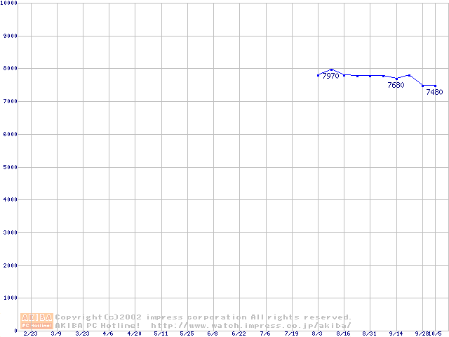 | [↑前グラフ]: | SpinPoint V60 (5400rpm,UltraATA/100,2MB)の最安値推移 |