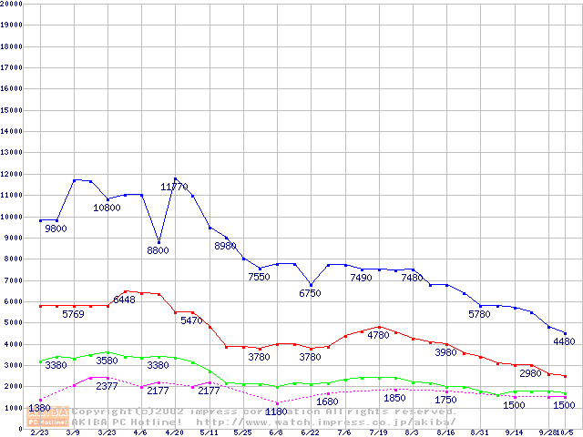 | [↓次グラフ]: | PC133 SDRAM DIMM CasLatency=2の最安値推移 |