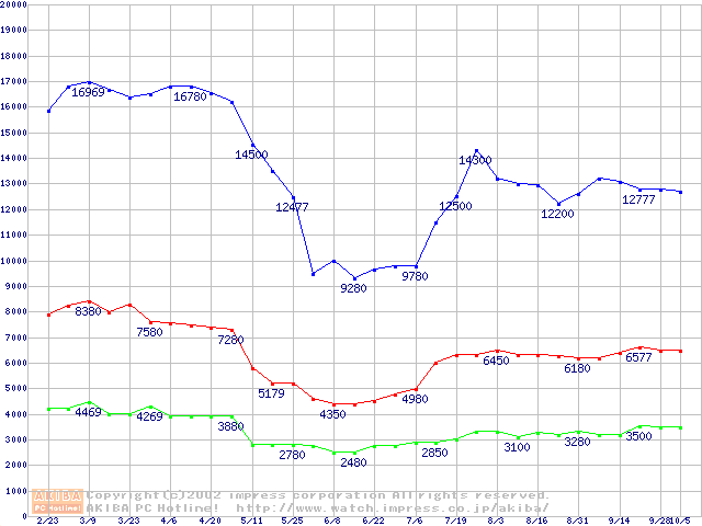 | [↓次グラフ]: | PC2700(DDR333) DDR SDRAM DIMMの最安値推移 |