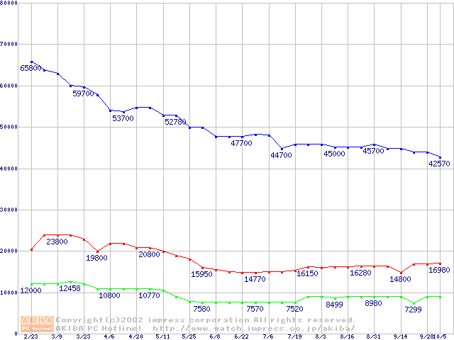 | [↑前グラフ]: | PC3500(DDR433) DDR SDRAM DIMMの最安値推移 |