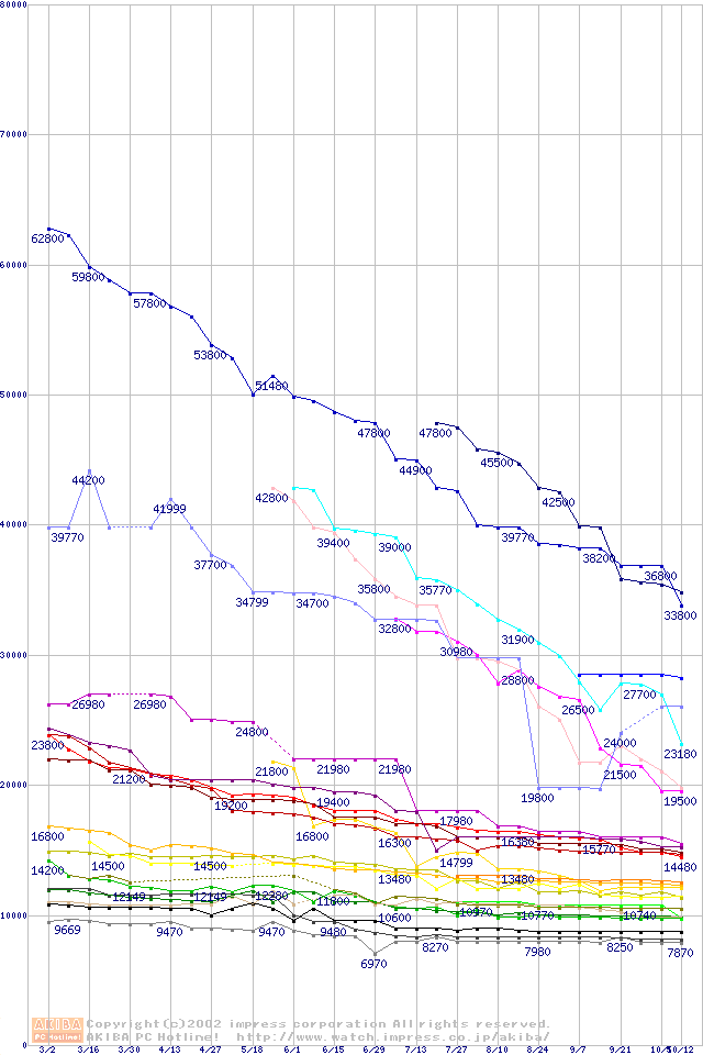 2.5インチHDD主要製品の最安値推移