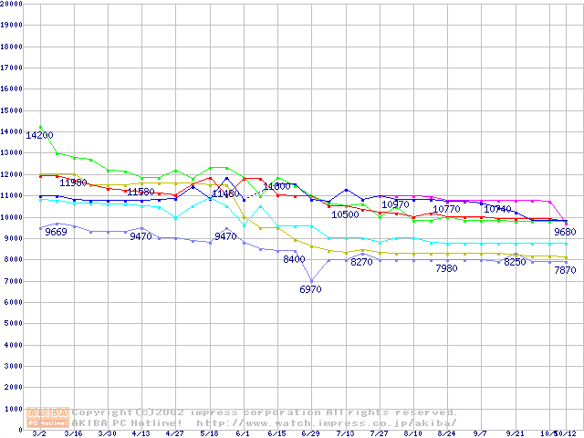 | [↑前グラフ]: | 2.5インチHDD主要製品の最安値推移 |