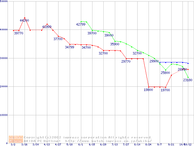 | [↓次グラフ]: | 2.5インチHDD主要製品(最安値3万円以上)の最安値推移 |