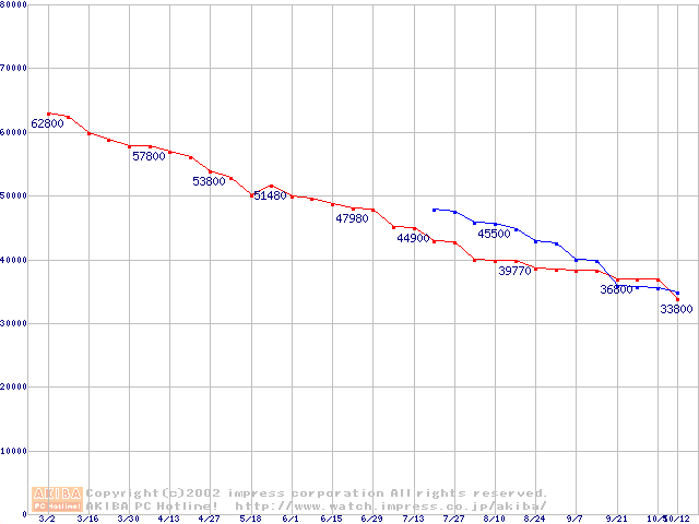 | [↓次グラフ]: | 2.5インチHDD 10GB~20GB未満(9.5mm厚)の最安値推移 |