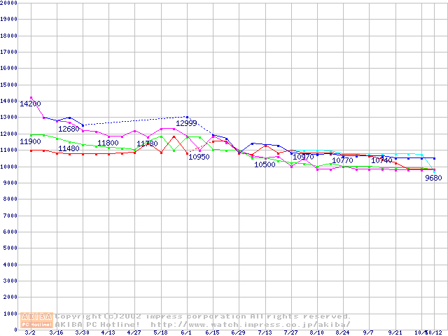 | [↑前グラフ]: | 2.5インチHDD 10GB~20GB未満(9.5mm厚)の最安値推移 |