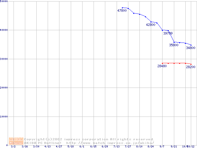 | [↓次グラフ]: | 2.5インチHDD 40GB~50GB未満(12.5mm厚)の最安値推移 |