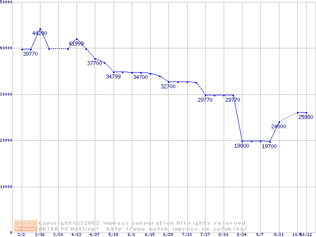 | [↑前グラフ]: | 2.5インチHDD 60GB~80GB未満(9.5mm厚)の最安値推移 |