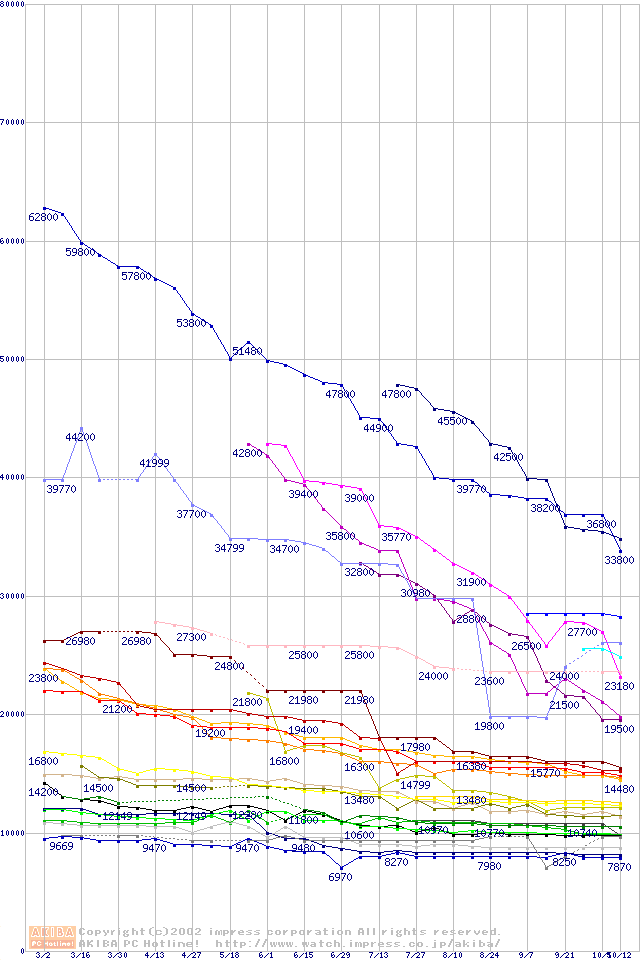 CPU主要製品の最安値推移