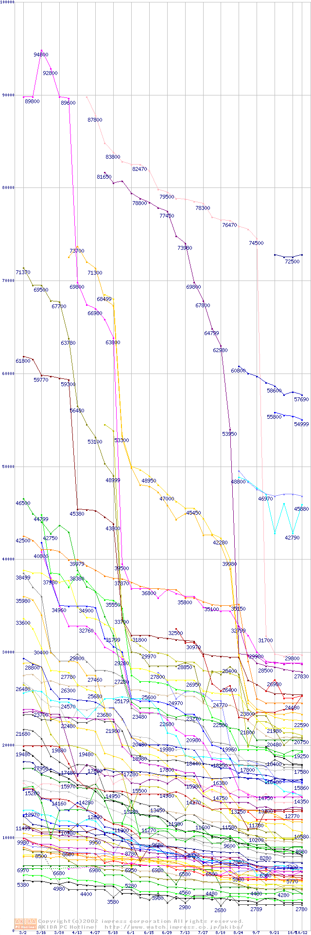 CPU主要製品の最安値推移