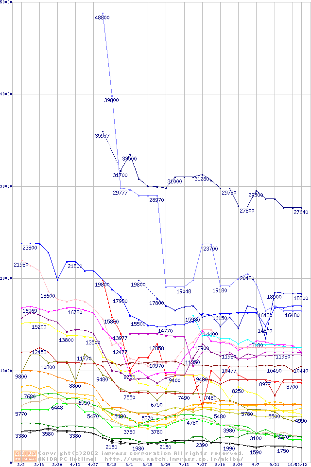 メモリ主要製品の最安値推移