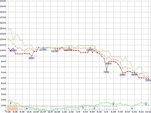 Athlon 1.1GHz(FSB200) バルクの価格推移