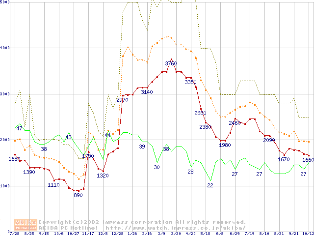 PC100 SDRAM DIMM CasLatency=2の最安値推移