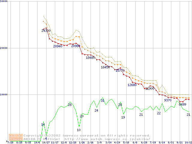 Athlon XP 1700+ (1.47GHz) リテールパッケージの価格推移