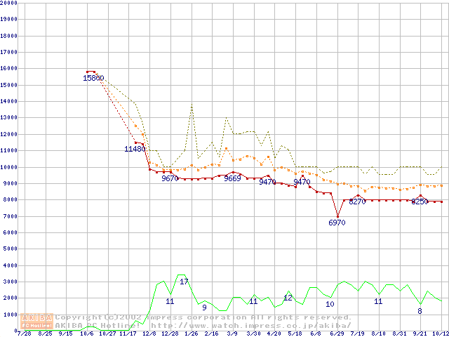 Travelstar 15GN (9.5mm,4200rpm,UltraATA/100,512KB,FDB)の最安値推移