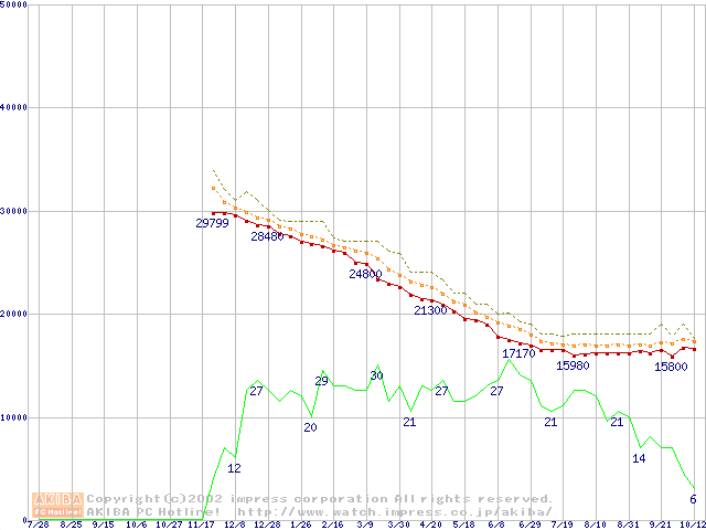 DiamondMax D540X-4G (5400rpm,UltraATA/133,40GB/Platter)の最安値推移