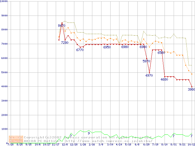 Socket 370 (PGA,FSB 133MHz,L2 64KB)の最安値推移