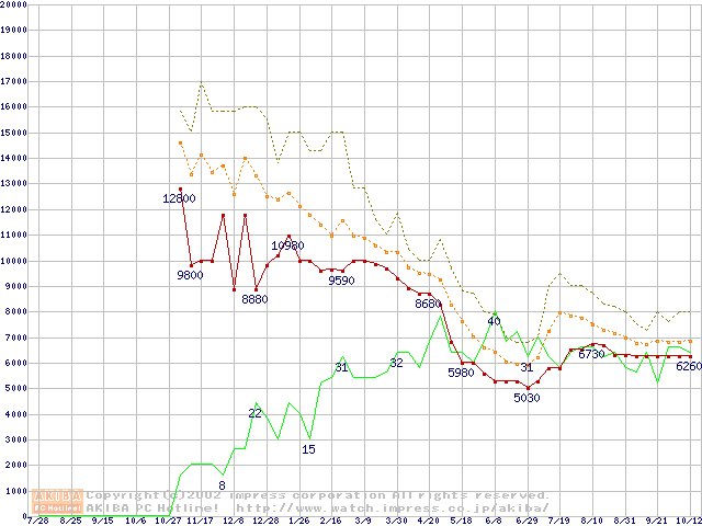 PC2700(DDR333) DDR SDRAM DIMMの最安値推移