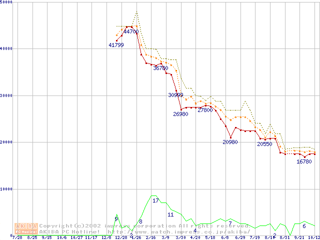 Socket A (OPGA,FSB 266MHz,L2 256KB,Palomino)の最安値推移