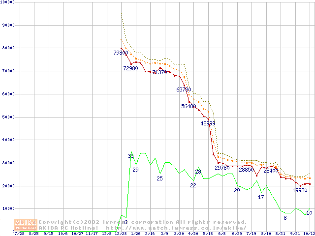 Pentium 4 2.20GHz リテールパッケージの価格推移