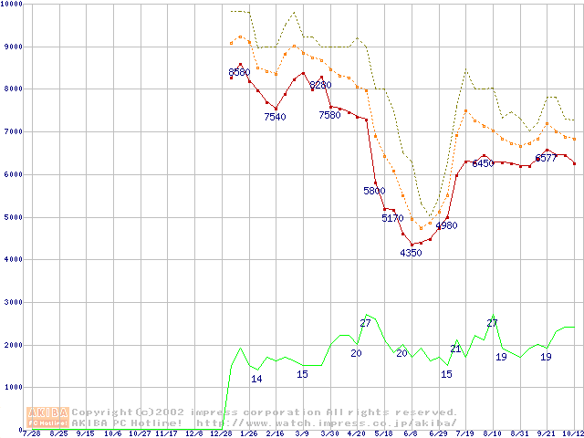 メモリ主要製品の最安値推移