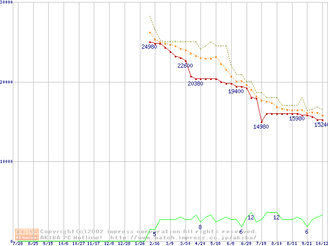 MHRシリーズ (9.5mm,4200rpm,UltraATA/100,2MB,FDB,20GB/Platter)の最安値推移