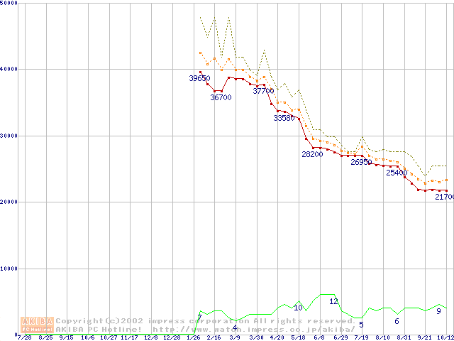 Socket 603 (micro-PGA,L2 512KB,Hyper-Threading,Prestonia)の最安値推移