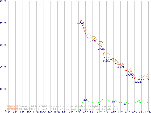 Socket A (OPGA,FSB 266MHz,L2 256KB,Palomino)の最安値推移