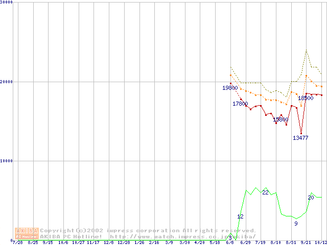 メモリ主要製品(最安値1万円以上)の最安値推移