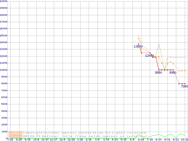 PC800-40 DRDRAM RIMM3200(32bit)の最安値推移