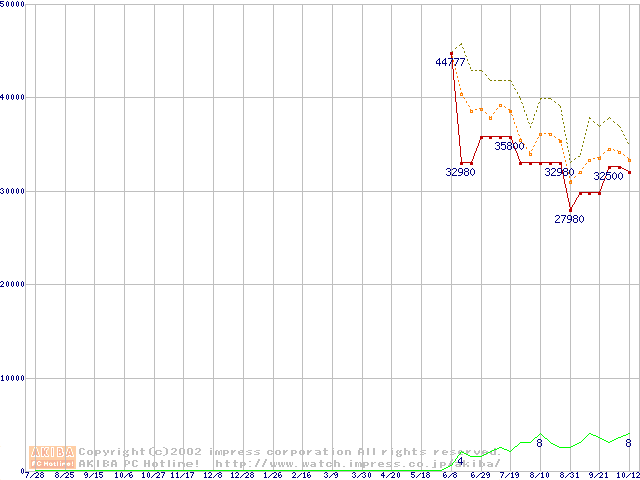 PC800-40 DRDRAM RIMM ECC対応の最安値推移