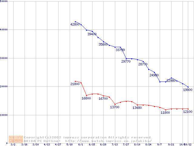 | [↑前グラフ]: | Travelstar 48GH (12.5mm,5400rpm,UltraATA/100,2MB,FDB)の最安値推移 |