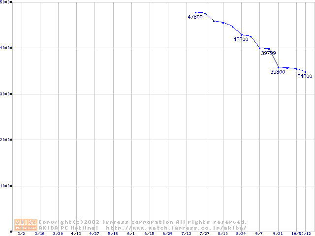 | [↑前グラフ]: | MKシリーズ (9.5mm,5400rpm,16MB,FDB,20GB/Platter)の最安値推移 |