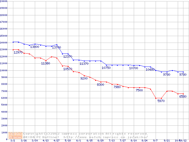 | [↓次グラフ]: | Socket A (PGA,FSB 200MHz,L2 256KB,Thunderbird)の最安値推移 |