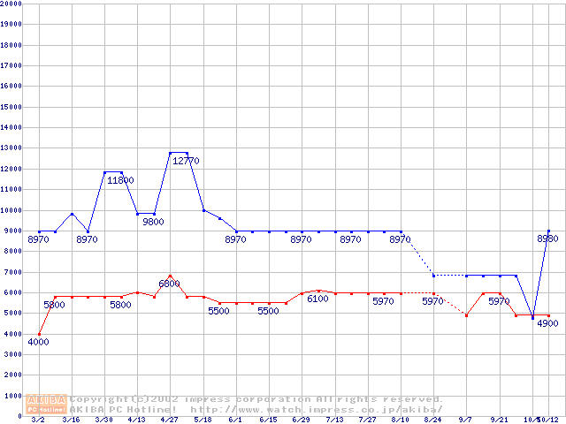 | [↓次グラフ]: | PC800-40 DRDRAM RIMMの最安値推移 |