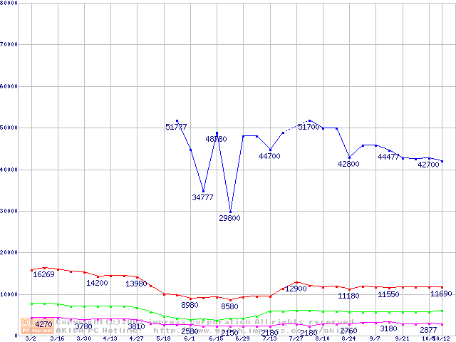 PC2100(DDR266) DDR SDRAM DIMM(CL 2.0)の最安値推移