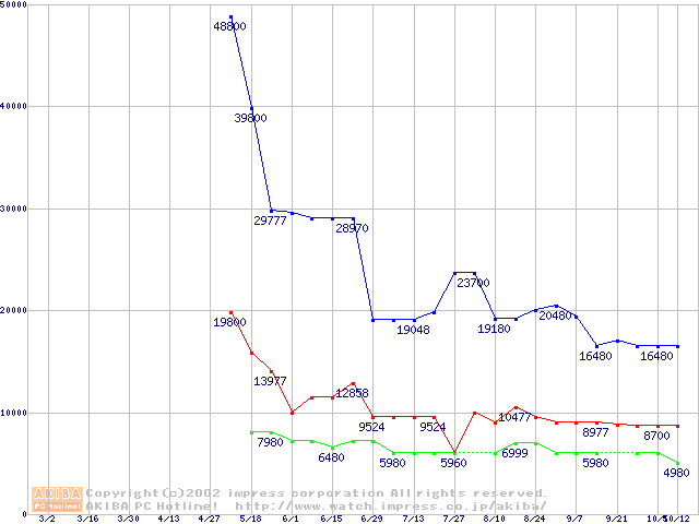 | [↑前グラフ]: | PC3000(DDR366) DDR SDRAM DIMMの最安値推移 |