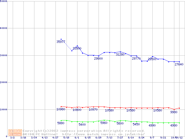 | [↓次グラフ]: | PC800-40 DRDRAM RIMM3200(32bit)の最安値推移 |