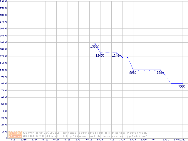 | [↓次グラフ]: | PC800-45 DRDRAM RIMMの最安値推移 |