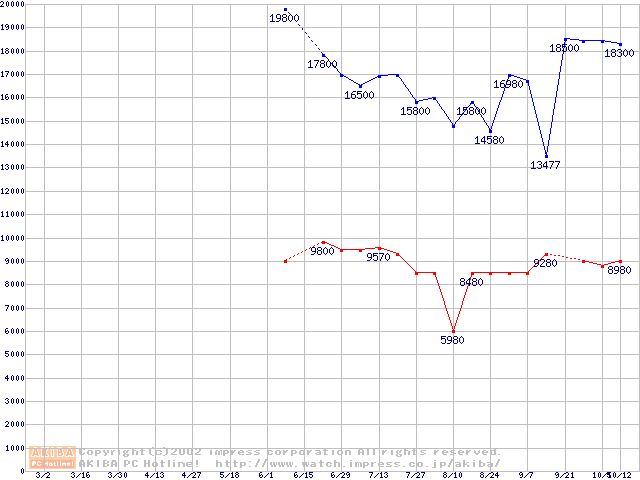 | [↓次グラフ]: | PC1066 DRDRAM RIMM4200(32bit)の最安値推移 |