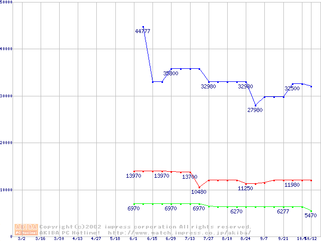 | [↓次グラフ]: | PC800-45 DRDRAM RIMM ECC対応の最安値推移 |