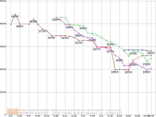 | [↓次グラフ]: | 2.5インチHDD主要製品(最安値3万円以上)の最安値推移 |